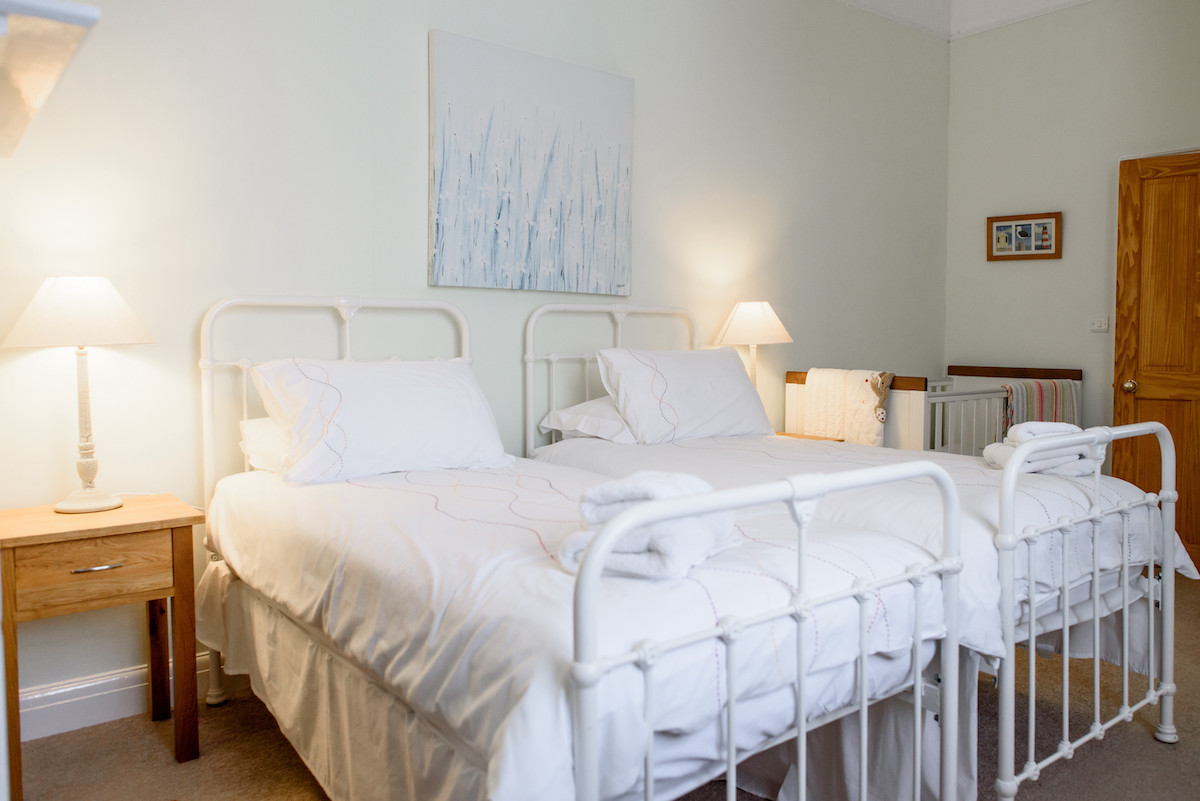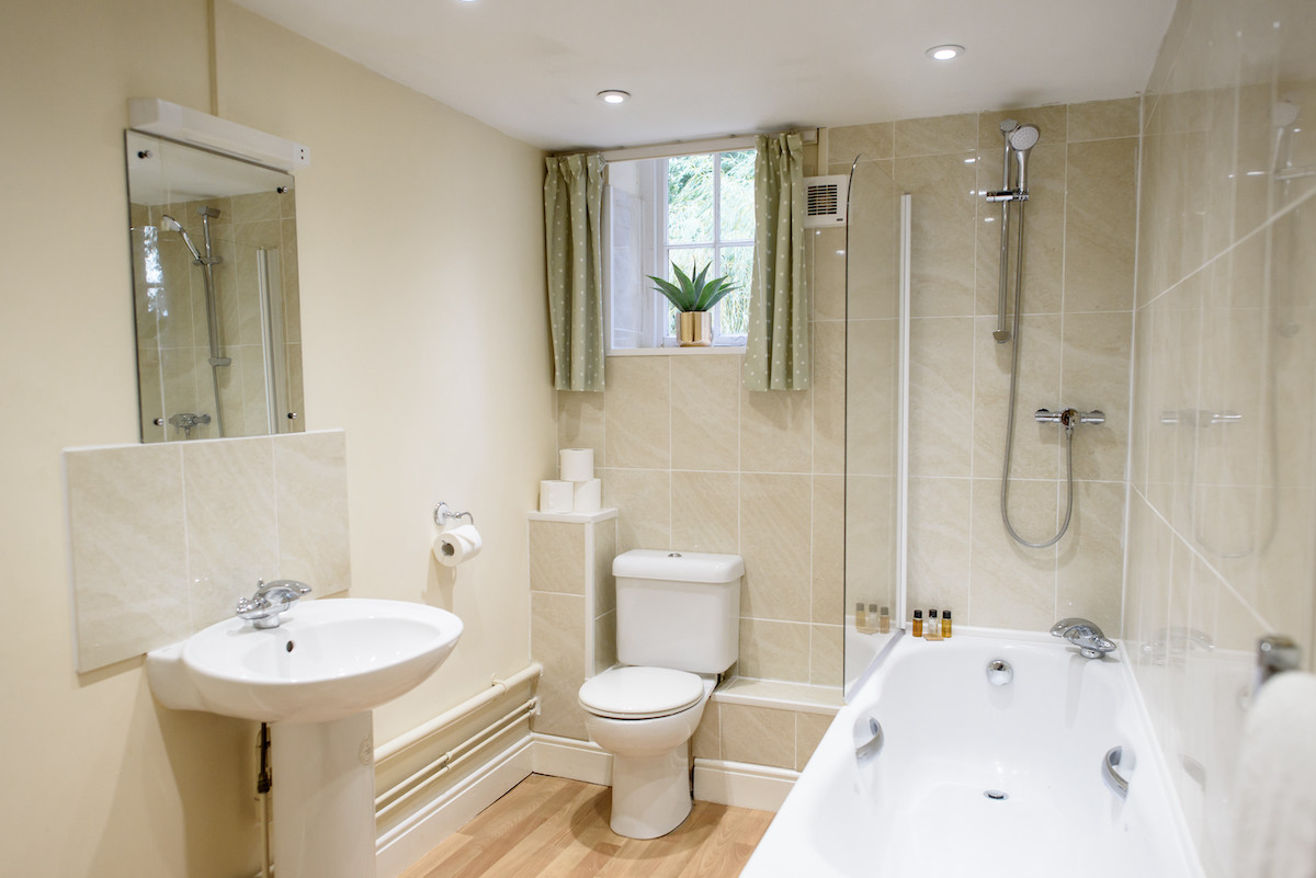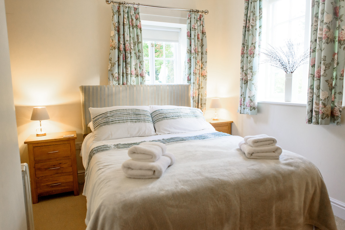 Take three steps down and you enter the lower level of the cottage. Here you will find a well-appointed master bedroom, complete with double bed and a family bathroom, with bath and over-bath shower.